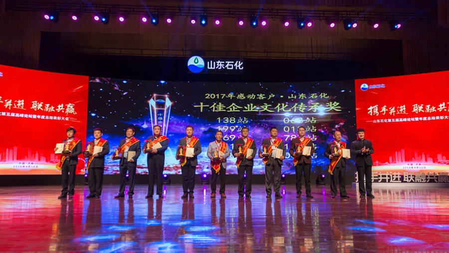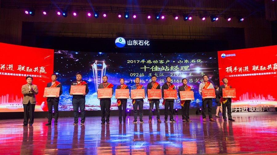 在會議現(xiàn)場,李新江總經(jīng)理宣讀了2017年度的表彰決定,并評選出2017年度感動客戶·山東石化十佳油品銷量增長站點(diǎn)獎、山東石化十佳非油品銷售站點(diǎn)、山東石化十佳營銷成果站點(diǎn)獎、山東石化油品質(zhì)量管理獎、山東石化十佳站點(diǎn)獎、2017年度感動山東石化· 一路同行客戶獎、2017年度感動客戶·山東石化十佳服務(wù)之星、山東石化十佳站經(jīng)理獎、山東石化十佳推介獎、山東石化公益人物獎等獎項(xiàng),相關(guān)領(lǐng)導(dǎo)予以頒獎。