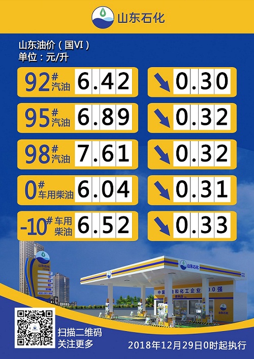 按照現(xiàn)行成品油價格形成機制,自2018年12月28日24時起,國內(nèi)汽、柴油價格(標(biāo)準(zhǔn)品,下同)每噸分別降低370元和355元。相關(guān)價格聯(lián)動及補貼政策按現(xiàn)行規(guī)定執(zhí)行。