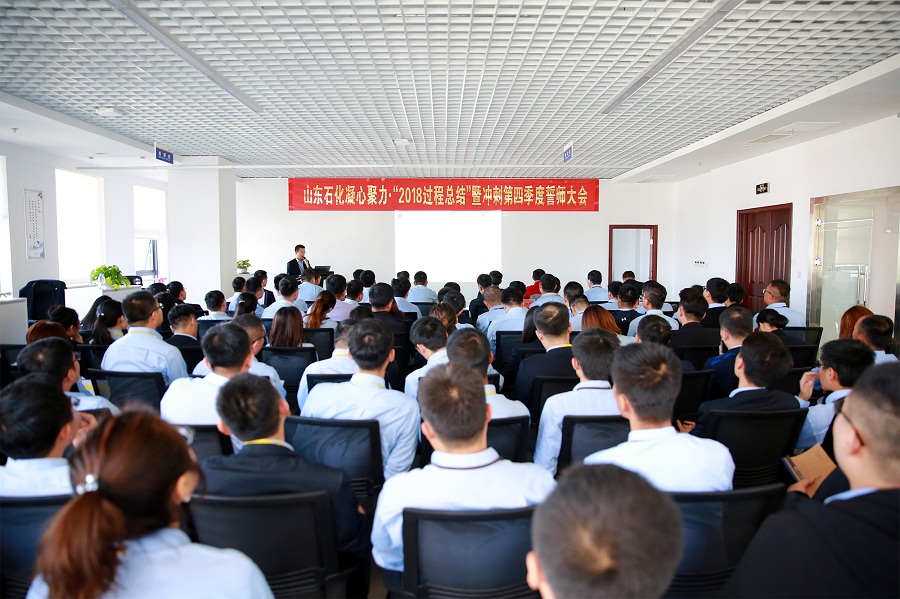 10月10日,山東石化凝心聚力?“2018過程總結(jié)”暨沖刺第四季度誓師大會在濟南隆重召開。