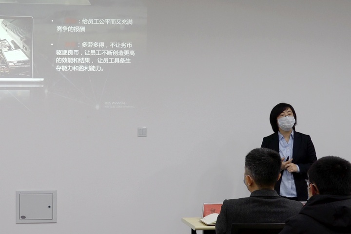 宣貫會上,人力資源管理部經(jīng)理于榮榮對此次權責利改革做了簡單的宣貫講解。她從權責利方案改革的背景、意義、目的和原則進行簡要講解。