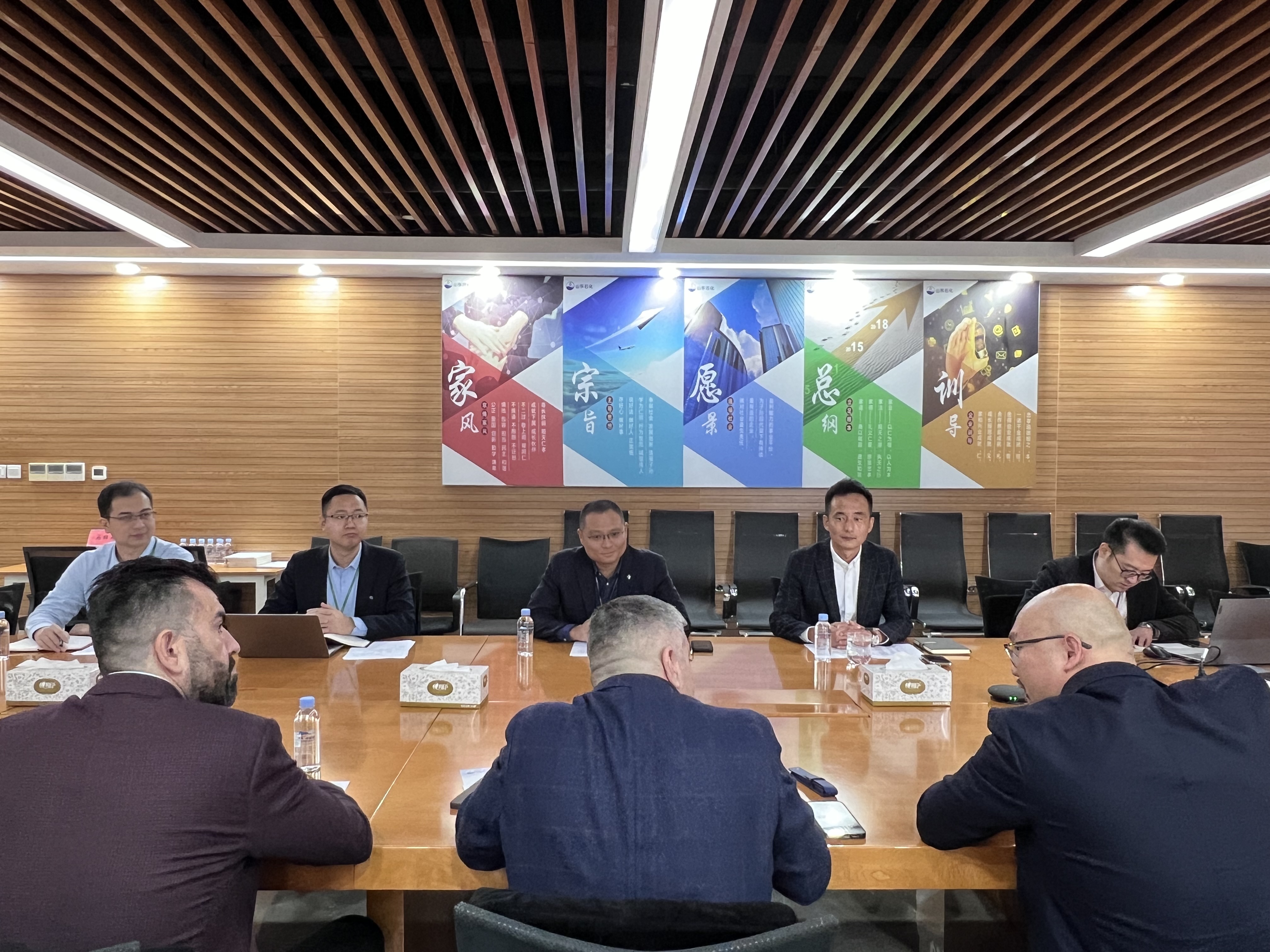 會議伊始,雙方共同觀看了京博控股集團官方宣傳片。皇甫傳磊首先對Antonio Márquez先生一行的到來表示熱烈歡迎,隨后,從公司概況、產(chǎn)品與服務(wù)、企業(yè)文化和發(fā)展戰(zhàn)略等四個部分介紹了山東石化的基本情況。Antonio Márquez先生,對山東石化秉承的企業(yè)文化以及聯(lián)融創(chuàng)新發(fā)展理念高度認(rèn)同。