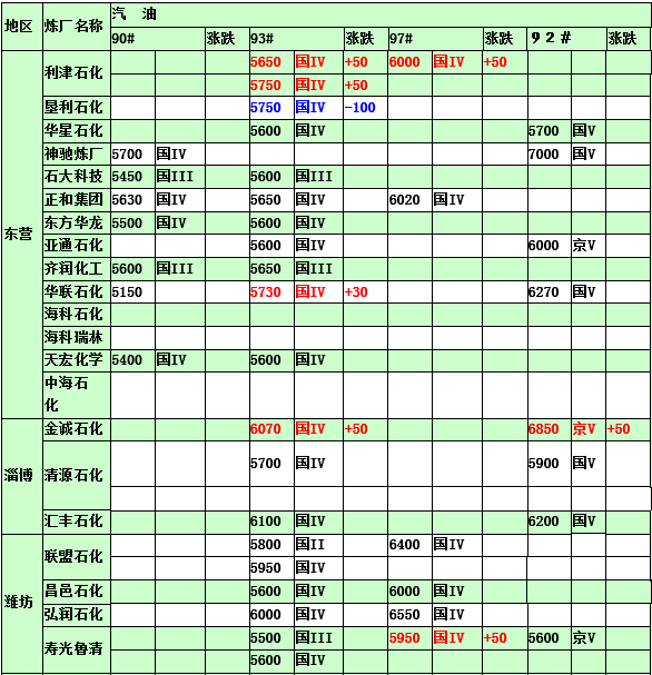 國內(nèi)煉廠2015年2月11日汽柴油價(jià)格表