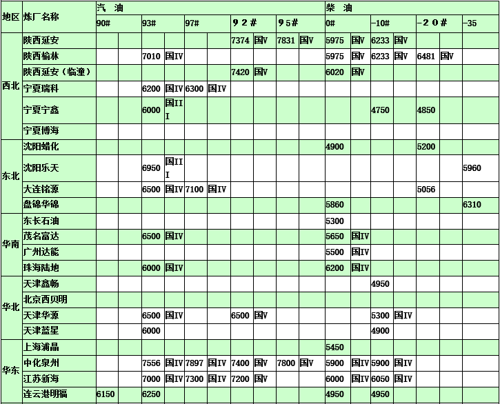 國內(nèi)煉廠2015年3月4日汽柴油價格表