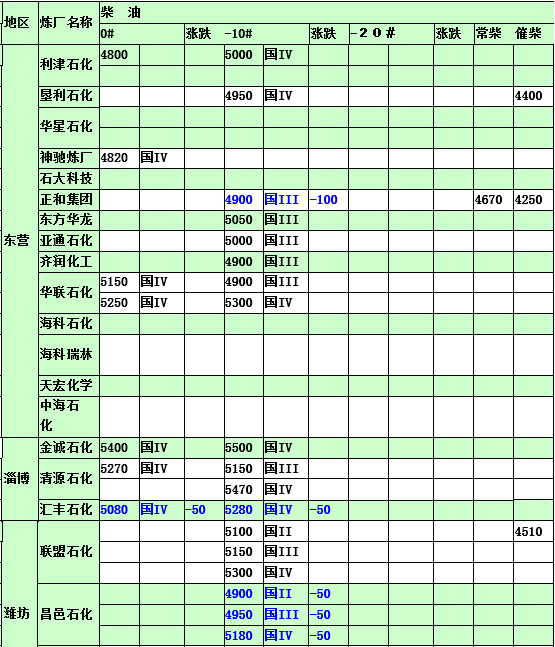 國(guó)內(nèi)煉廠2015年3月6日汽柴油價(jià)格表