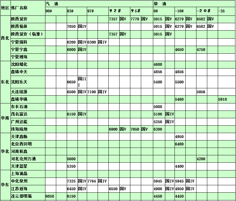 國內煉廠2015年3月17日汽柴油價格表