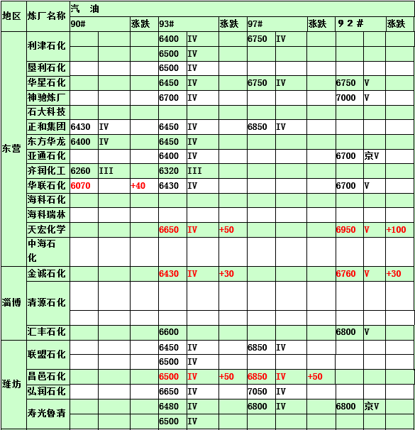 2015年4月15日山東地煉汽油價格