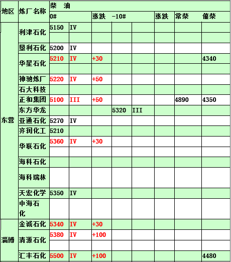 2015年5月4日山東地煉柴油價格
