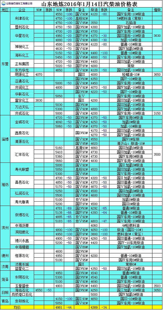 2016年1月14日山東地?zé)捚裼蛢r(jià)格表