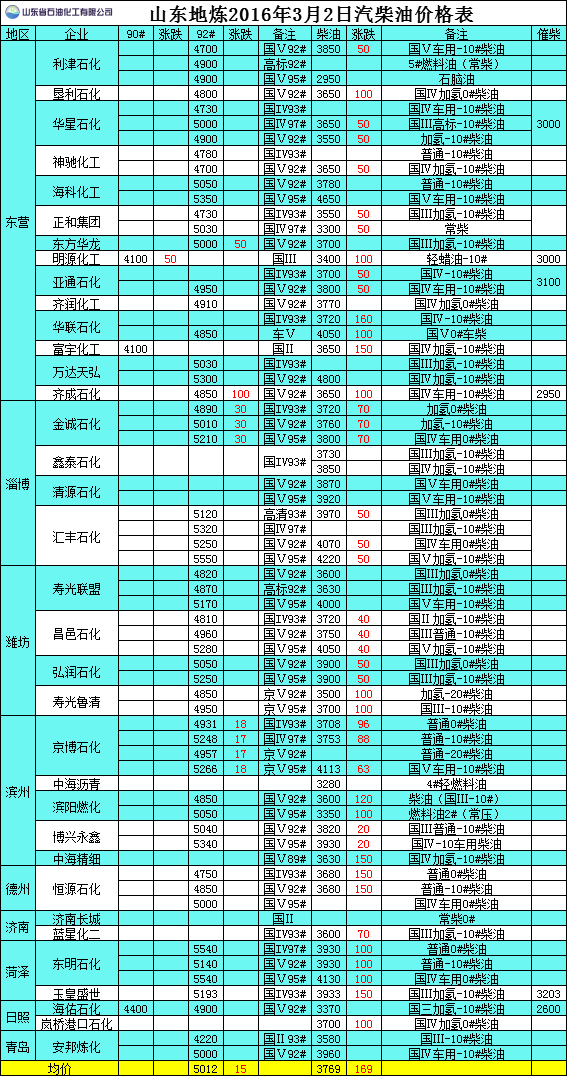 2016年3月2日山東地?zé)捚裼蛢r格表