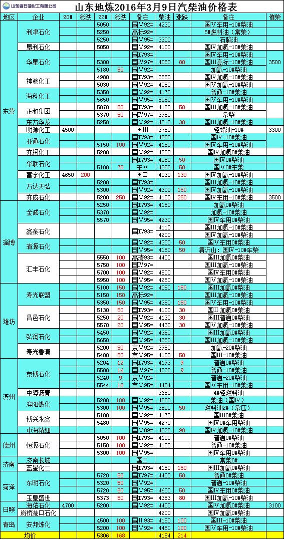 2016年3月9日山東地?zé)捚裼蛢r(jià)格表