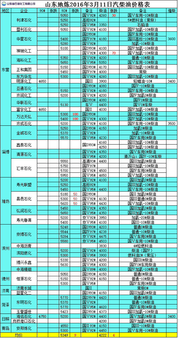 2016年3月10日山東地?zé)捚裼蛢r(jià)格表