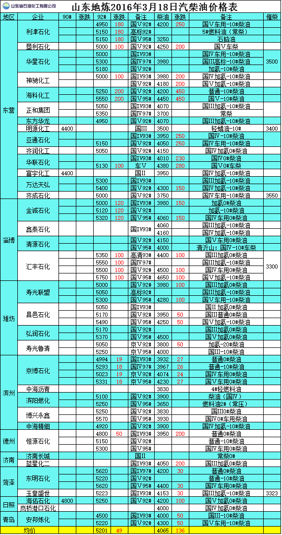 2016年3月18日山東地?zé)捚裼蛢r(jià)格表