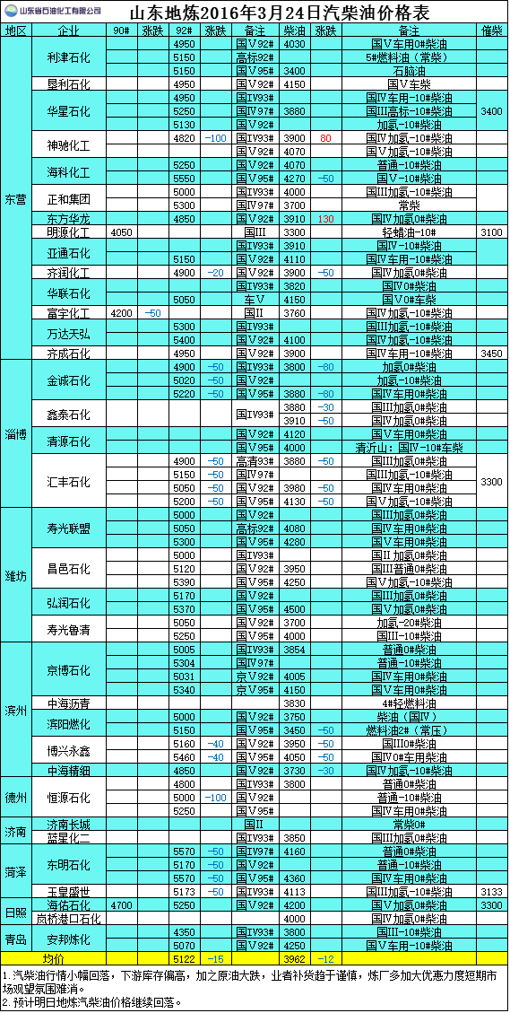 2016年3月24日山東地?zé)捚裼蛢r(jià)格表