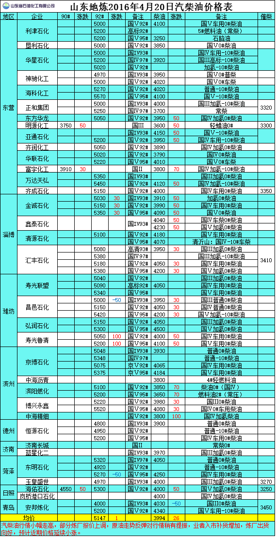 2016年4月20日山東地?zé)捚裼蛢r(jià)格表