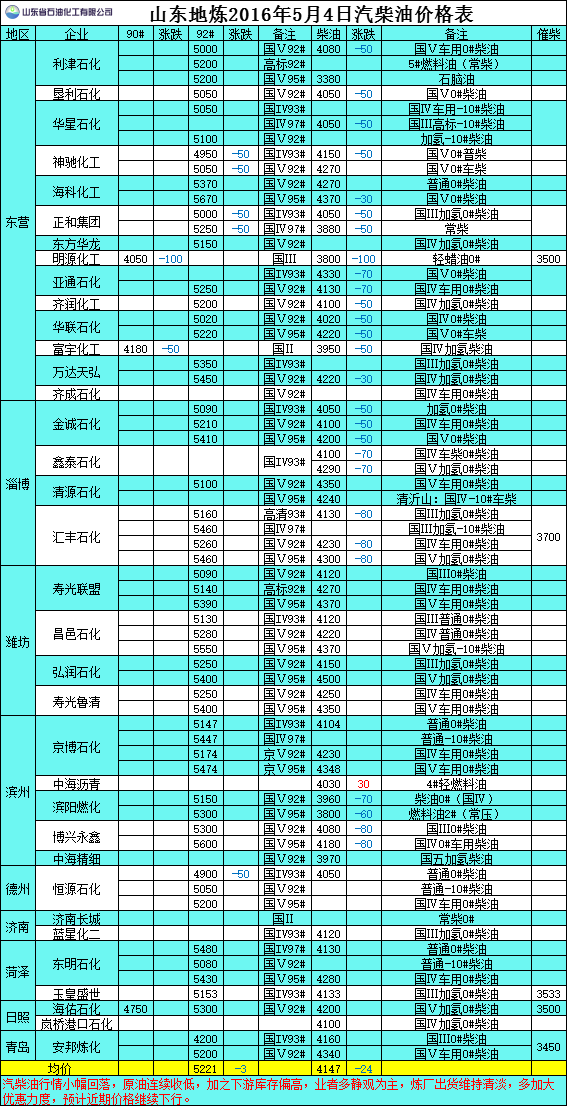 2016年5月4日山東地?zé)捚裼蛢r(jià)格表