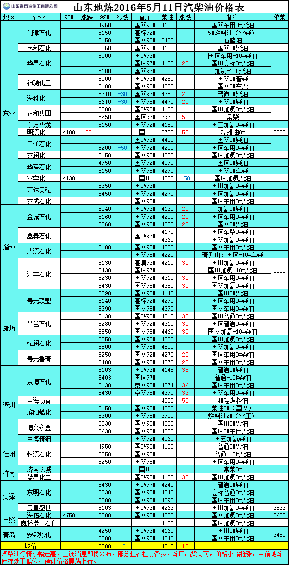 2016年5月11日山東地?zé)捚裼蛢r(jià)格表