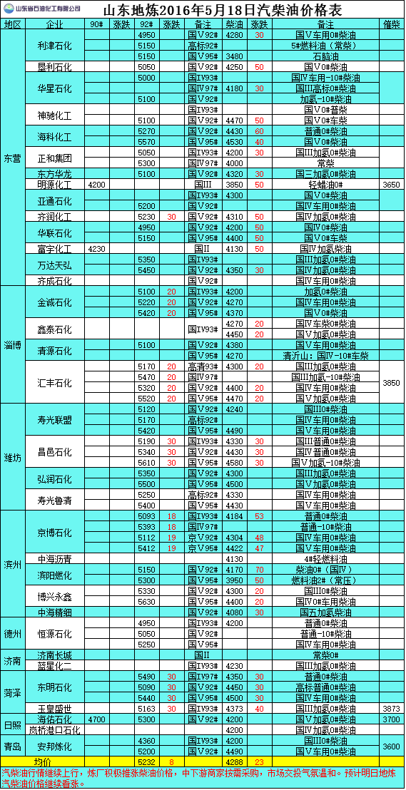2016年5月18日山東地?zé)捚裼蛢r(jià)格表