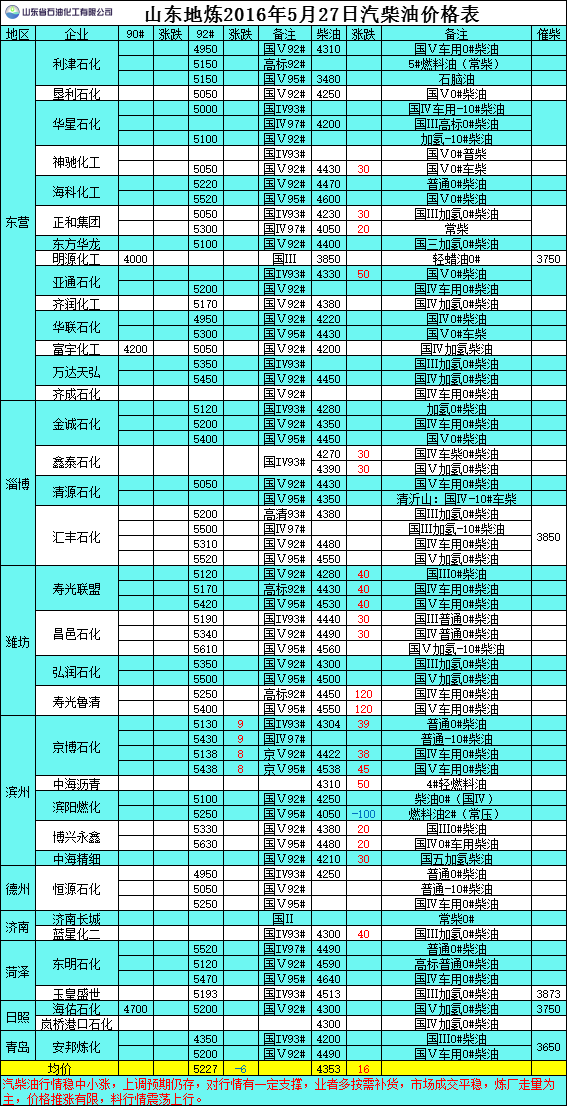 2016年5月27日山東地?zé)捚裼蛢r(jià)格表