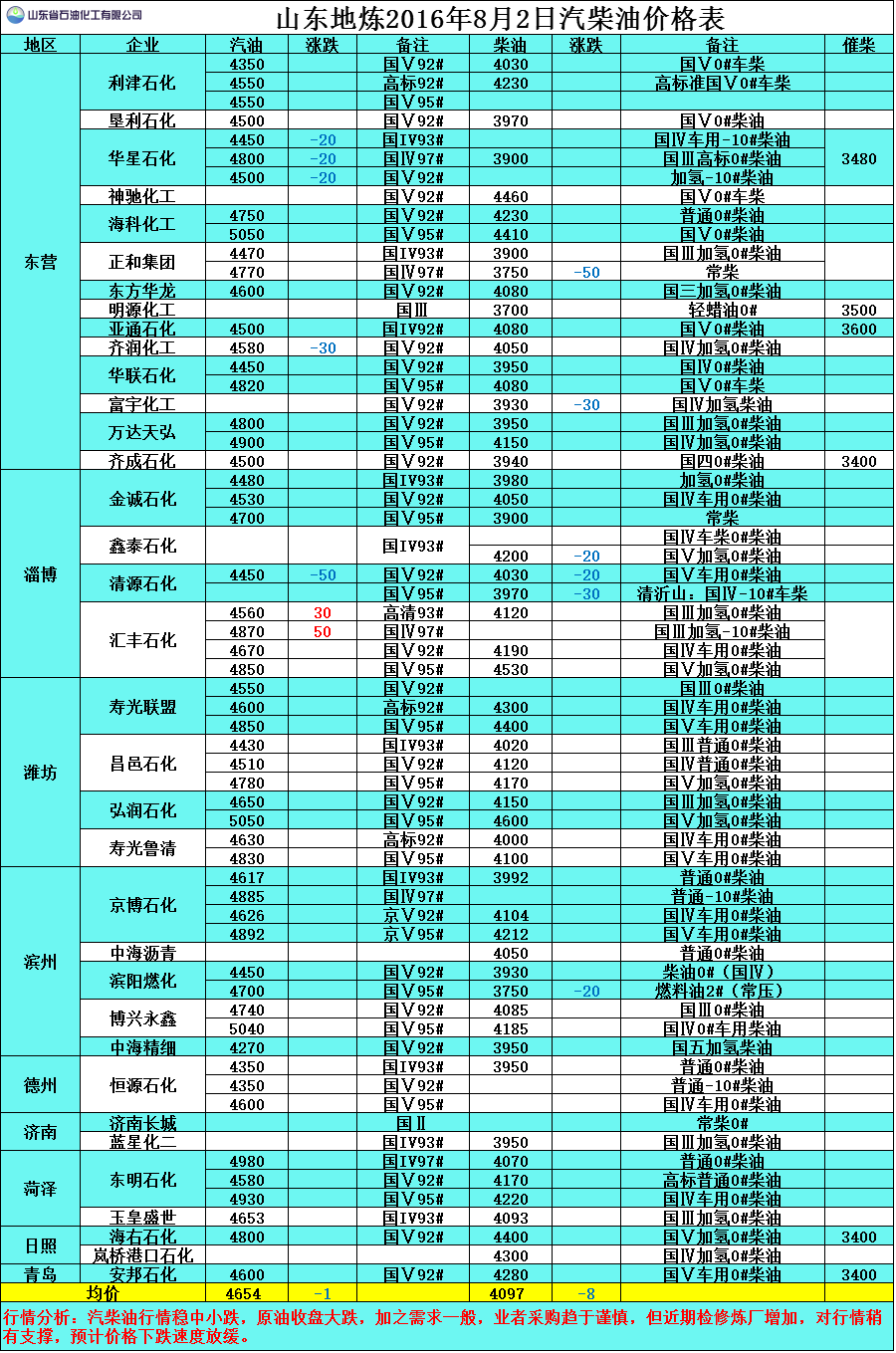 行情分析:汽柴油行情穩(wěn)中小跌,原油收盤大跌,加之需求一般,業(yè)者采購(gòu)趨于謹(jǐn)慎,但近期檢修煉廠增加,對(duì)行情稍有支撐,預(yù)計(jì)價(jià)格下跌速度放緩。