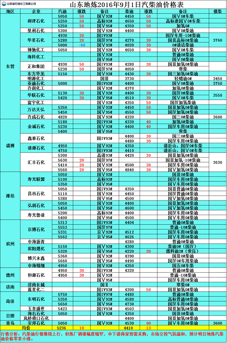 9月1日山東地煉汽柴油價格