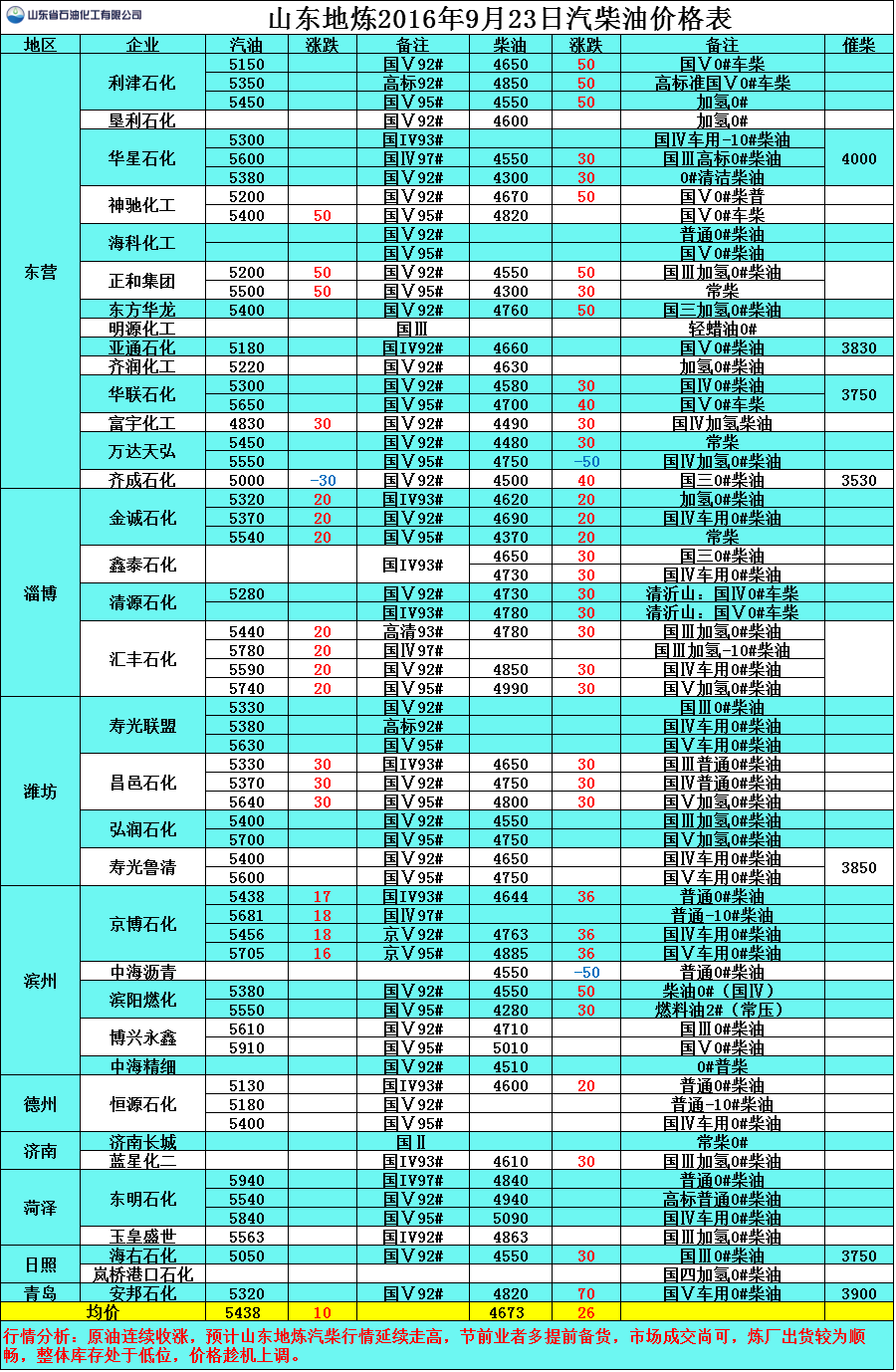 9月22日山東地煉汽柴油價格
