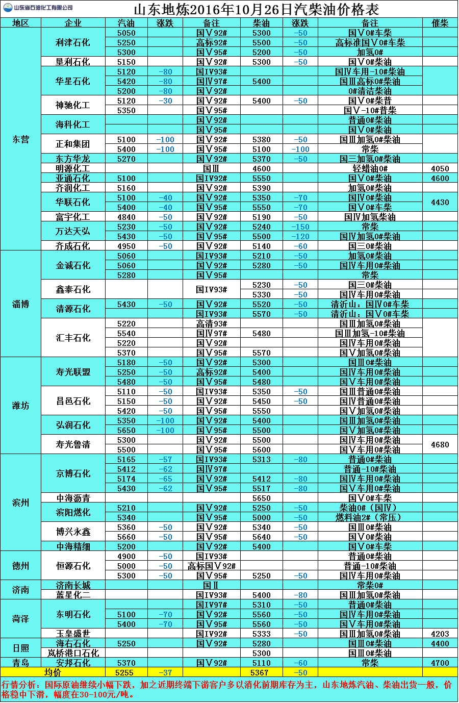 行情分析:國(guó)際原油繼續(xù)小幅下跌,加之近期終端下游客戶多以消化前期庫(kù)存為主,山東地?zé)捚?、柴油出貨一般,價(jià)格穩(wěn)中下滑,幅度在30-100元/噸。