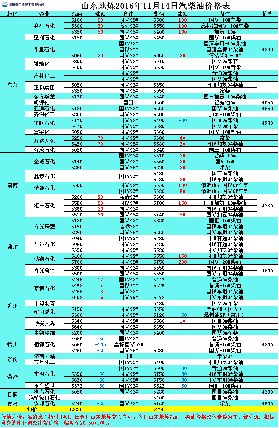 11月14日山東地煉汽柴油價格
