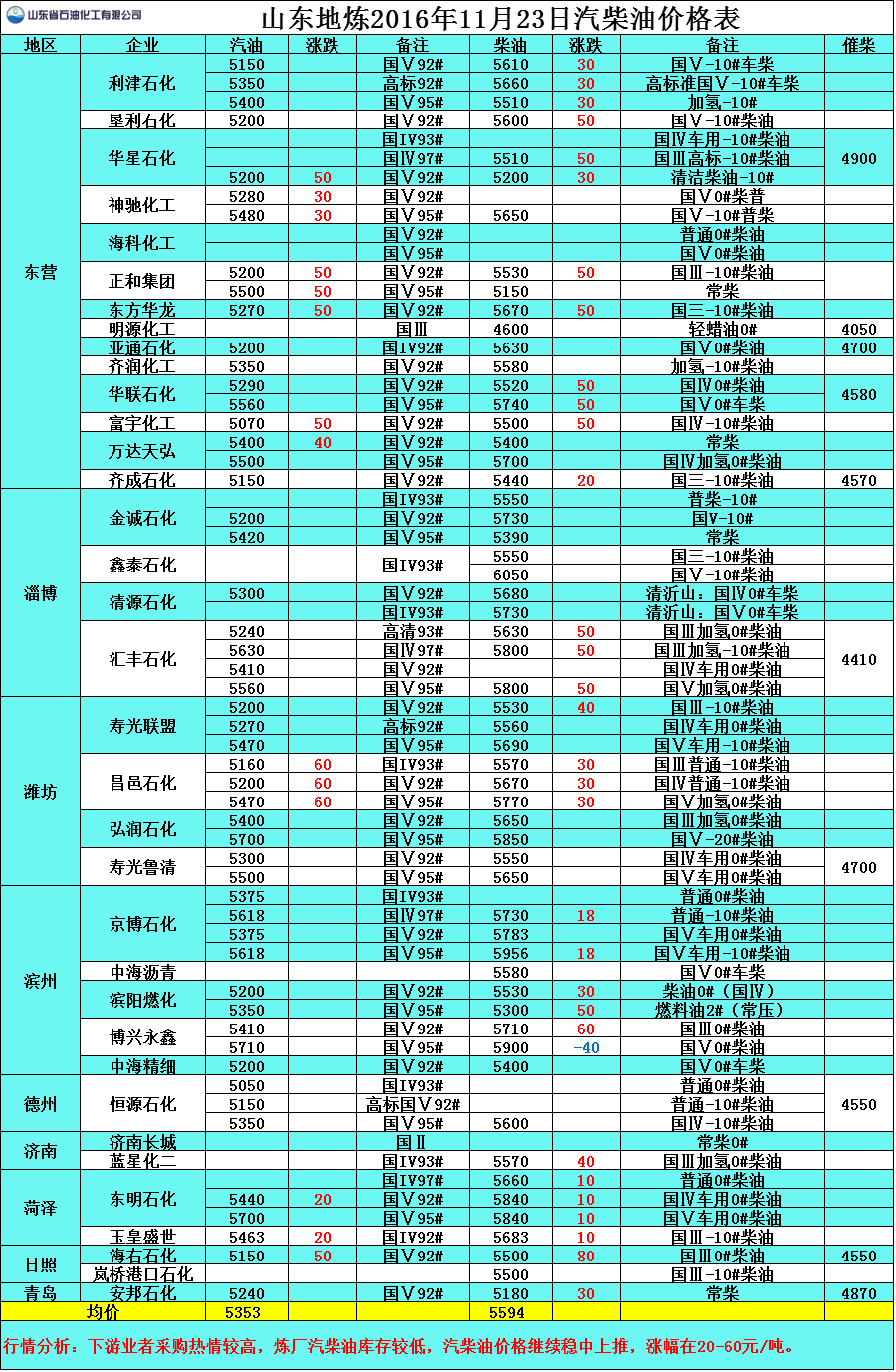 行情分析:下游業(yè)者采購熱情較高,煉廠汽柴油庫存較低,汽柴油價格繼續(xù)穩(wěn)中上推,漲幅在20-60元/噸。