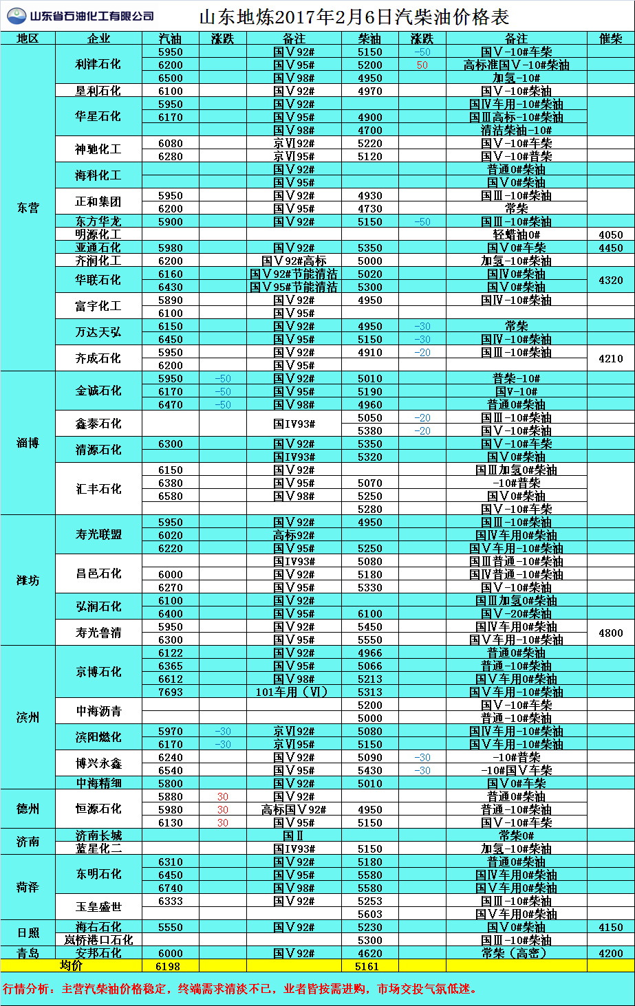 2017年2月6日山東地?zé)捚裼蛢r格