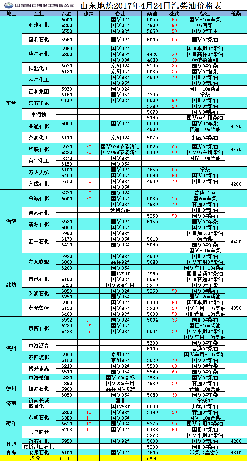 2017年4月24日山東地?zé)捚裼蛢r(jià)格