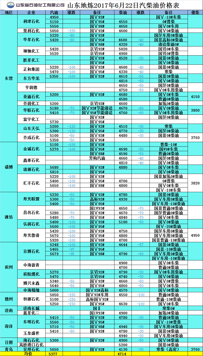 2017年6月22日山東地?zé)捚裼蛢r(jià)格